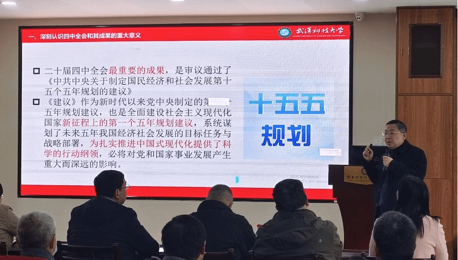 (通讯员 刘泓男 张彤宇)12月18日下午,3044am永利集团官网委联合先进耐火材料全国重点实验室(武汉)党总支,在教十楼401报告厅共同举办学习贯彻党的二十届四中全会精神专题宣讲会。本次宣讲由马克思主义公司张齐武教授主讲,先进耐火材料全国重点实验室(武汉)党总支书记林莉主持,两公司党员教师和员工代表参会。
