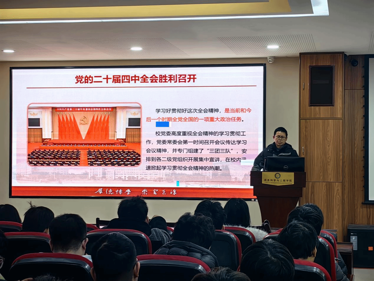 (通讯员谢炜 徐诗亮)为推动干部师生全面学习、全面把握、全面落实党的二十届四中全会精神,12月4日,3044am永利集团“双带头人”专题宣讲会在青山校区教十楼四楼会议室顺利举行。