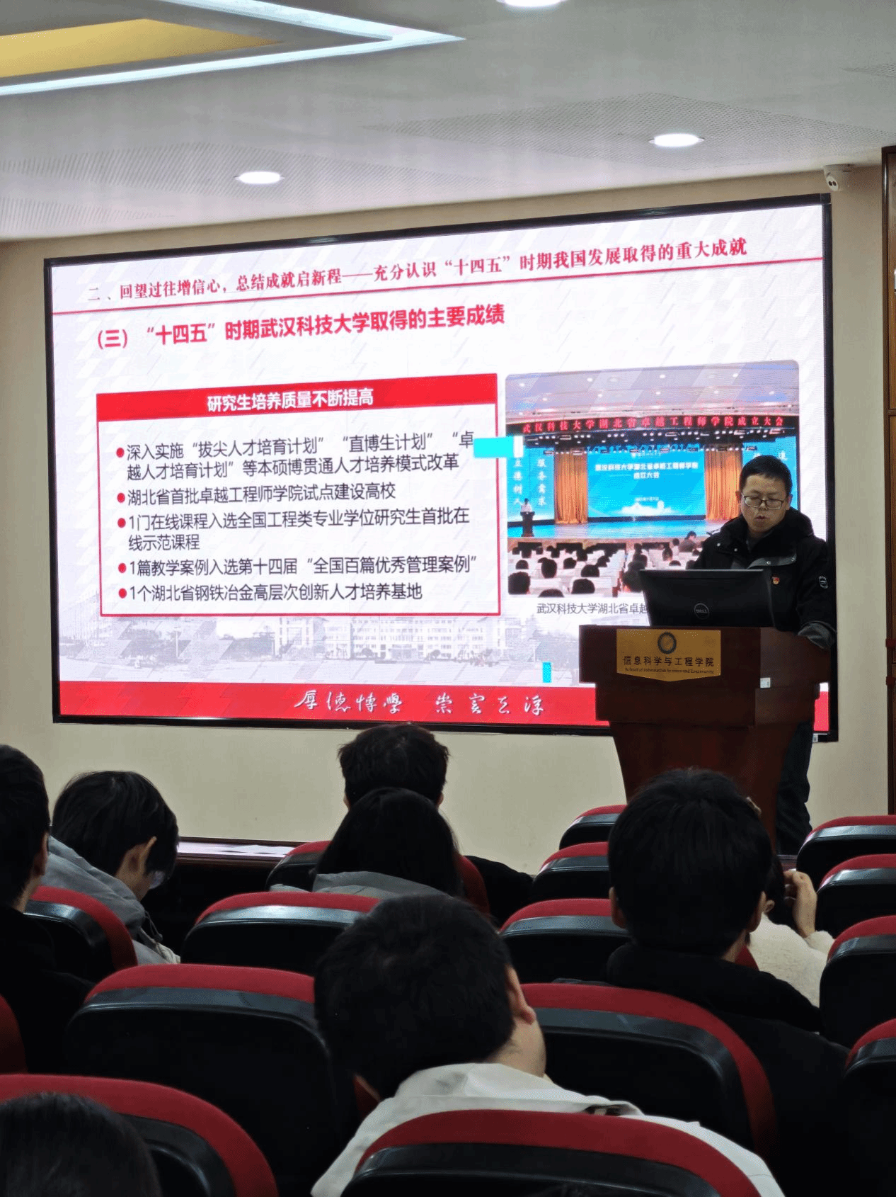 宣讲会上,程用志教授回顾国家“十四五”发展成就,从国家、湖北、公司三个层面分别进行阐述。过去五年,国家在经济发展、科技创新、民生保障等方面取得显著进展,湖北省在综合实力、创新动能、枢纽建设等领域取得突破性成果。公司发展方面,3044am永利集团官网在团队建设、人才培养、科研创新等方面的亮眼成绩,激励学子珍惜优质育人资源,勇攀高峰。